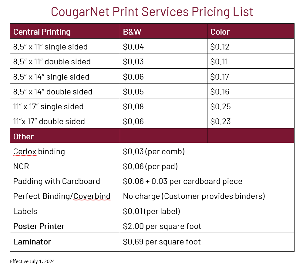 To add credit to your print balance, please visit the CougarNet helpdesk. You may add to your print balance with either cash or check.